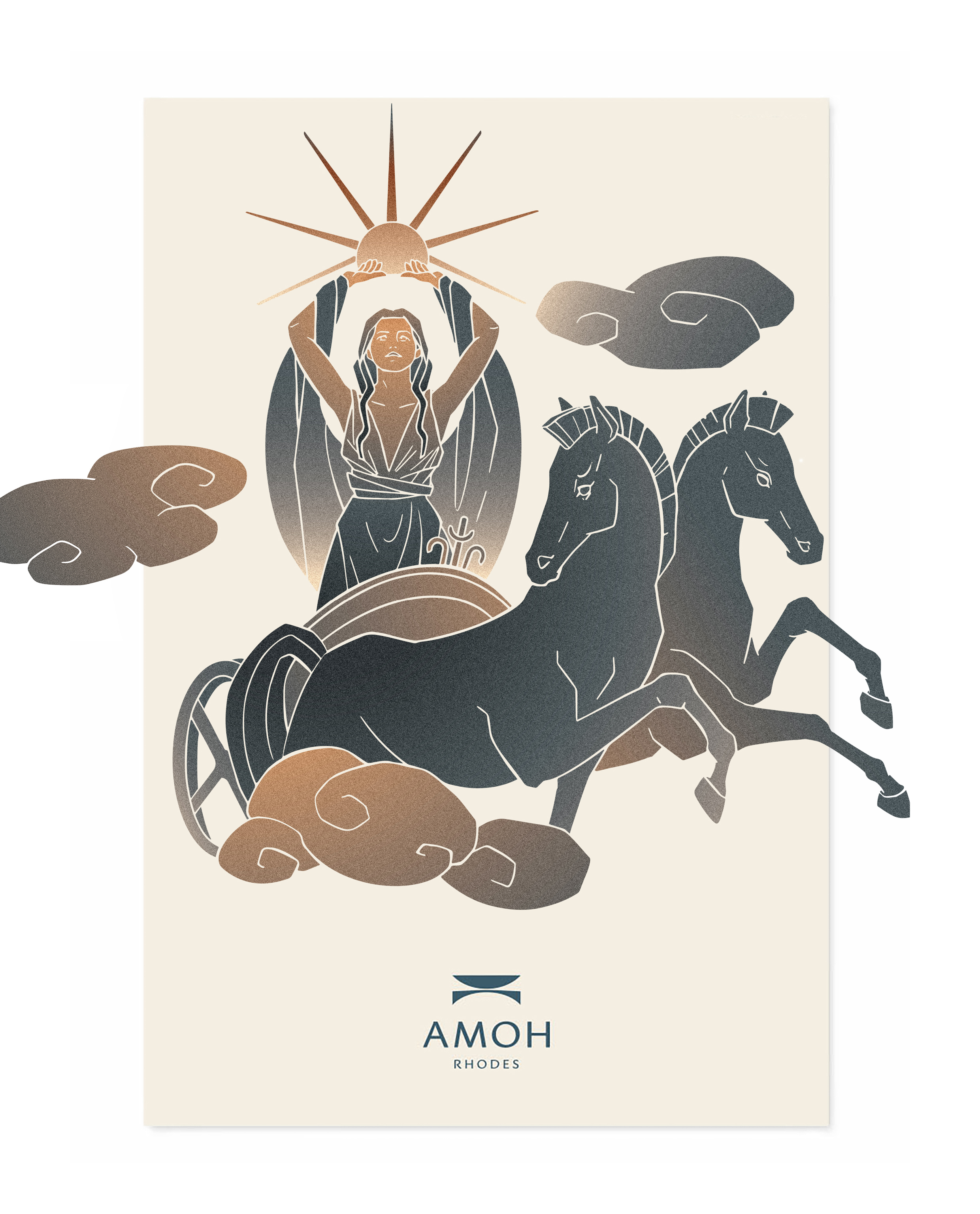 ENG - Series of illustrations for AMOH Resort in Rhodes, Greece. Each artwork depicts a god or nymph whose story is deeply rooted in the storyline of the hotel and the Island of Rhodes.
